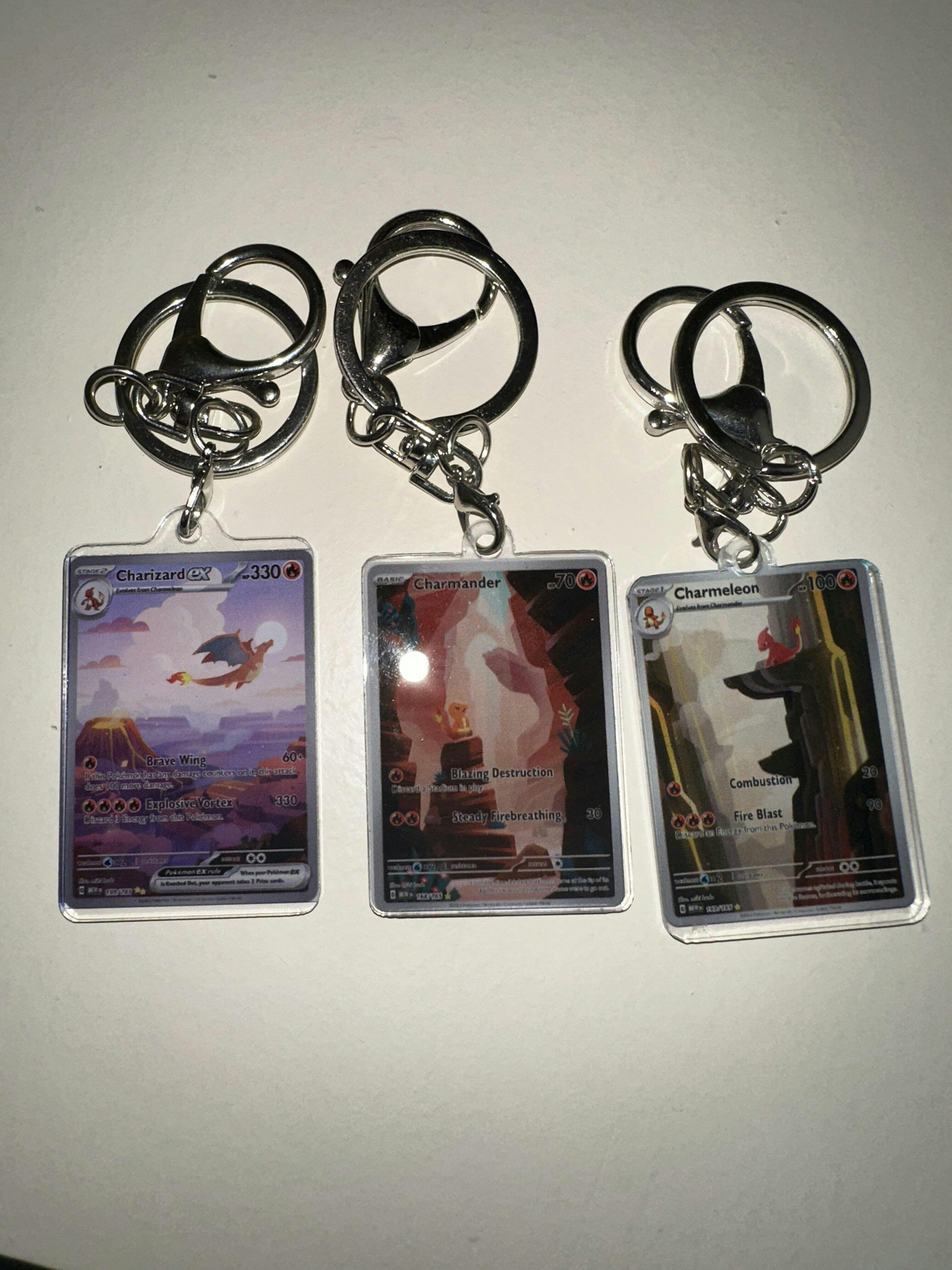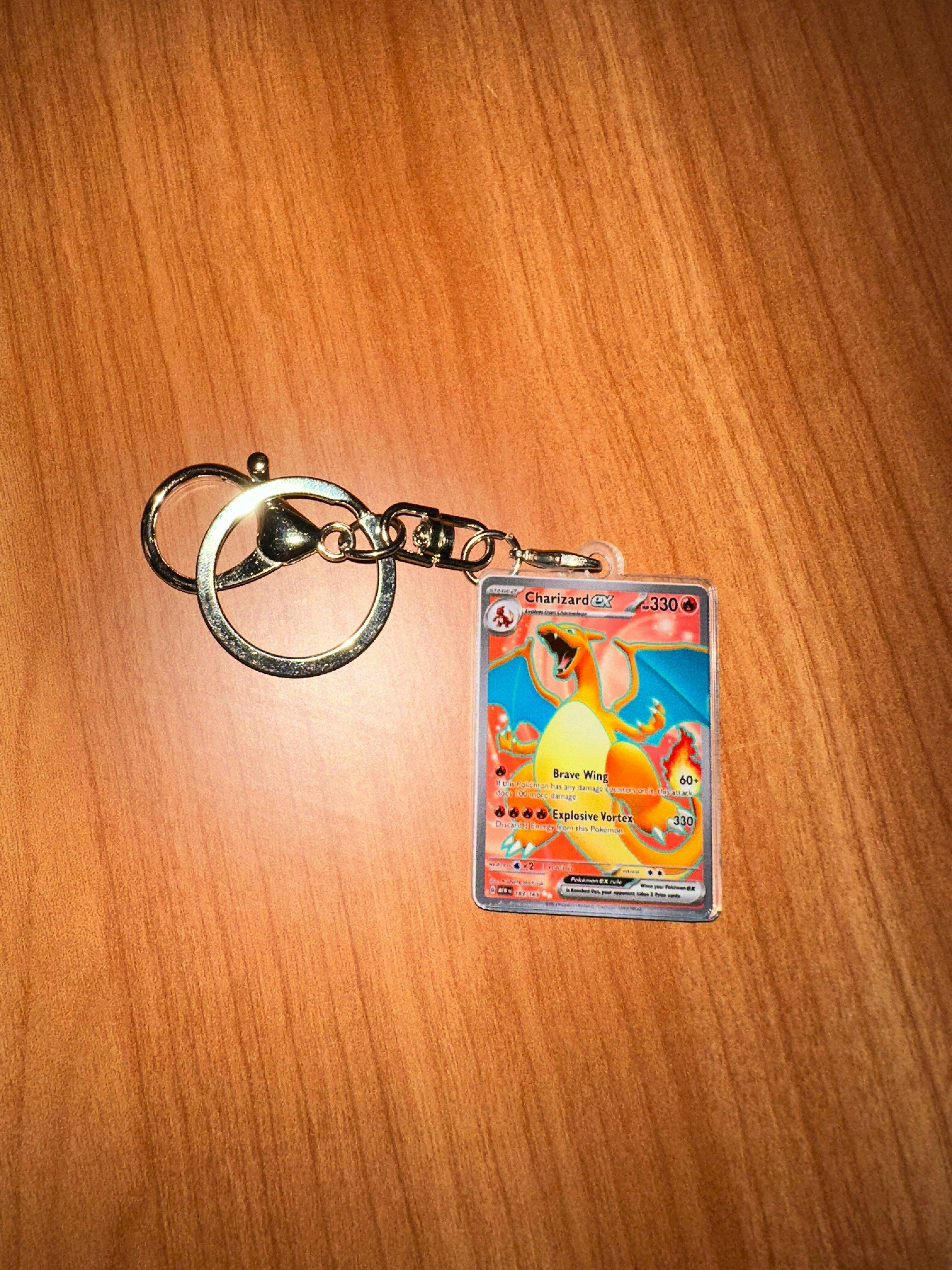 Keychain composed of a metal chain holding an acrylic piece with the adhesive of the corresponding card.
