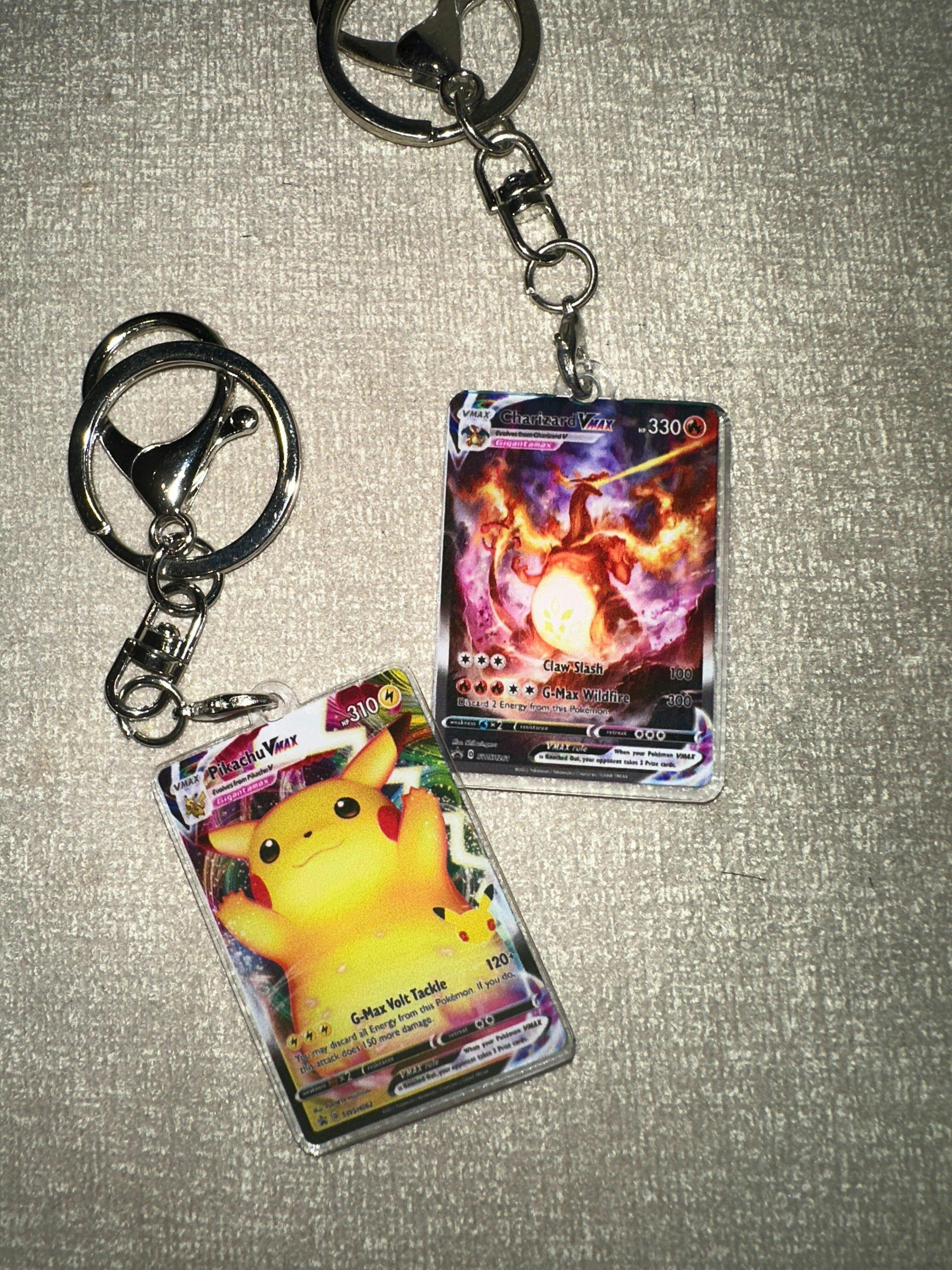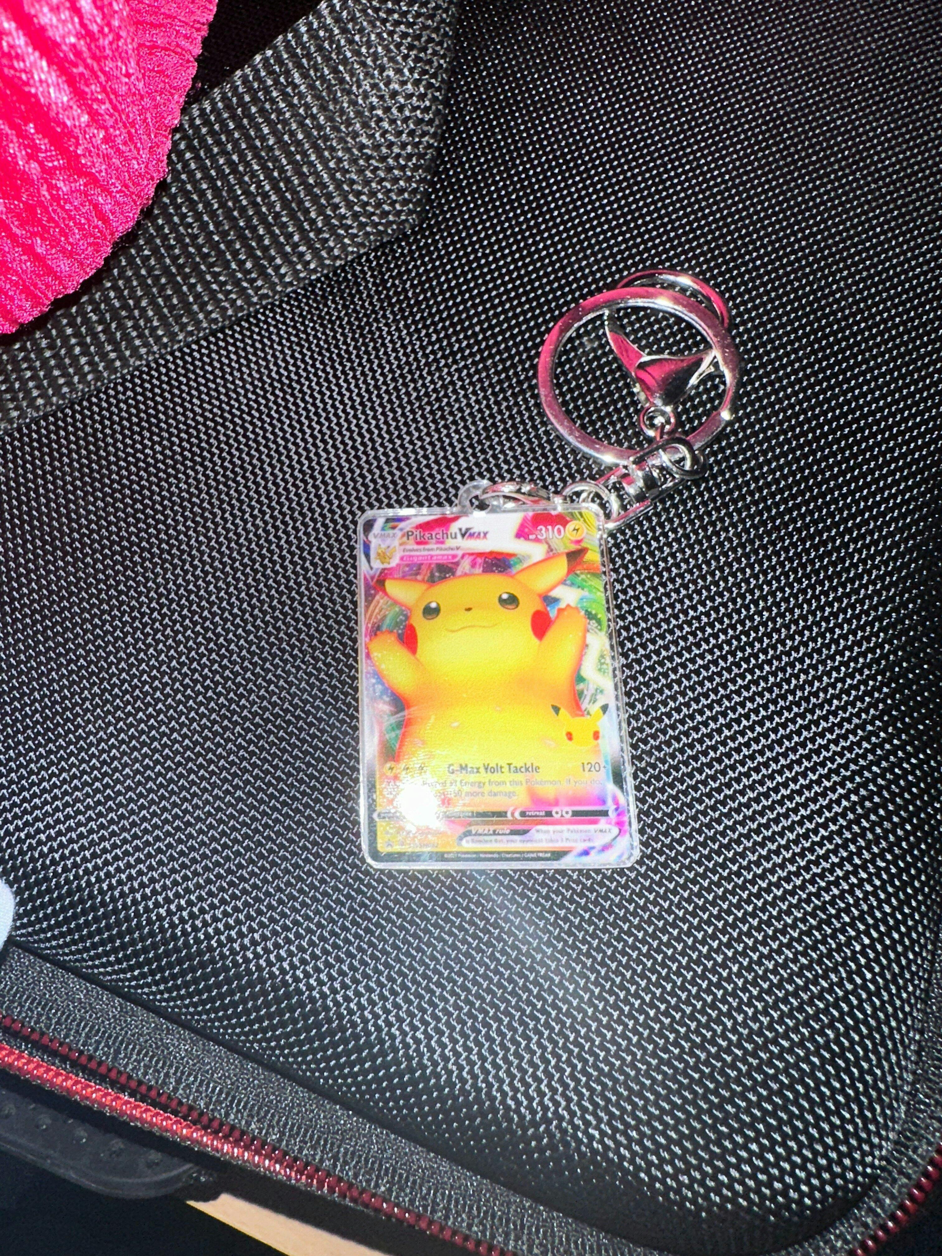 Keychain composed of a metal chain holding an acrylic piece with the adhesive of the corresponding card.
