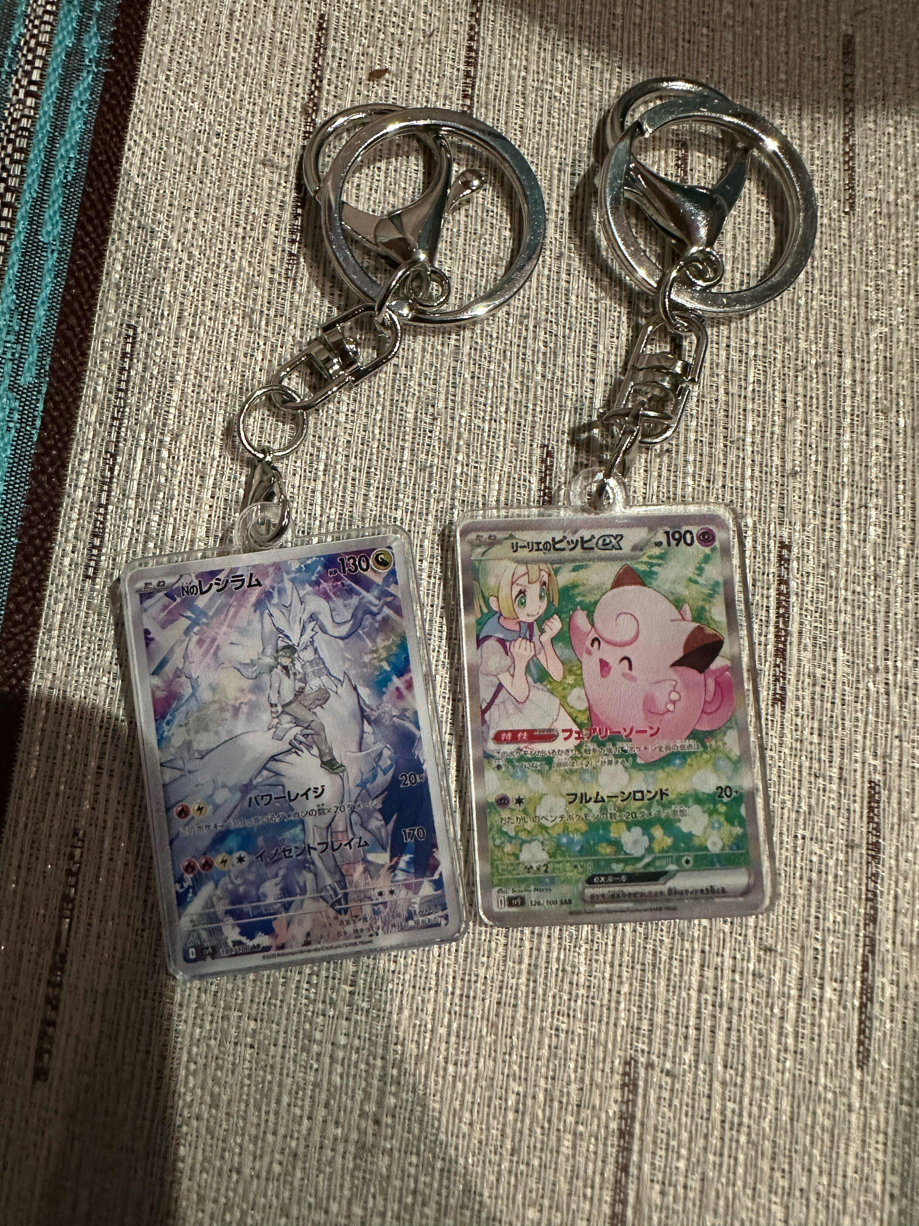 Keychain composed of a metal chain holding an acrylic piece with the adhesive of the corresponding card.
