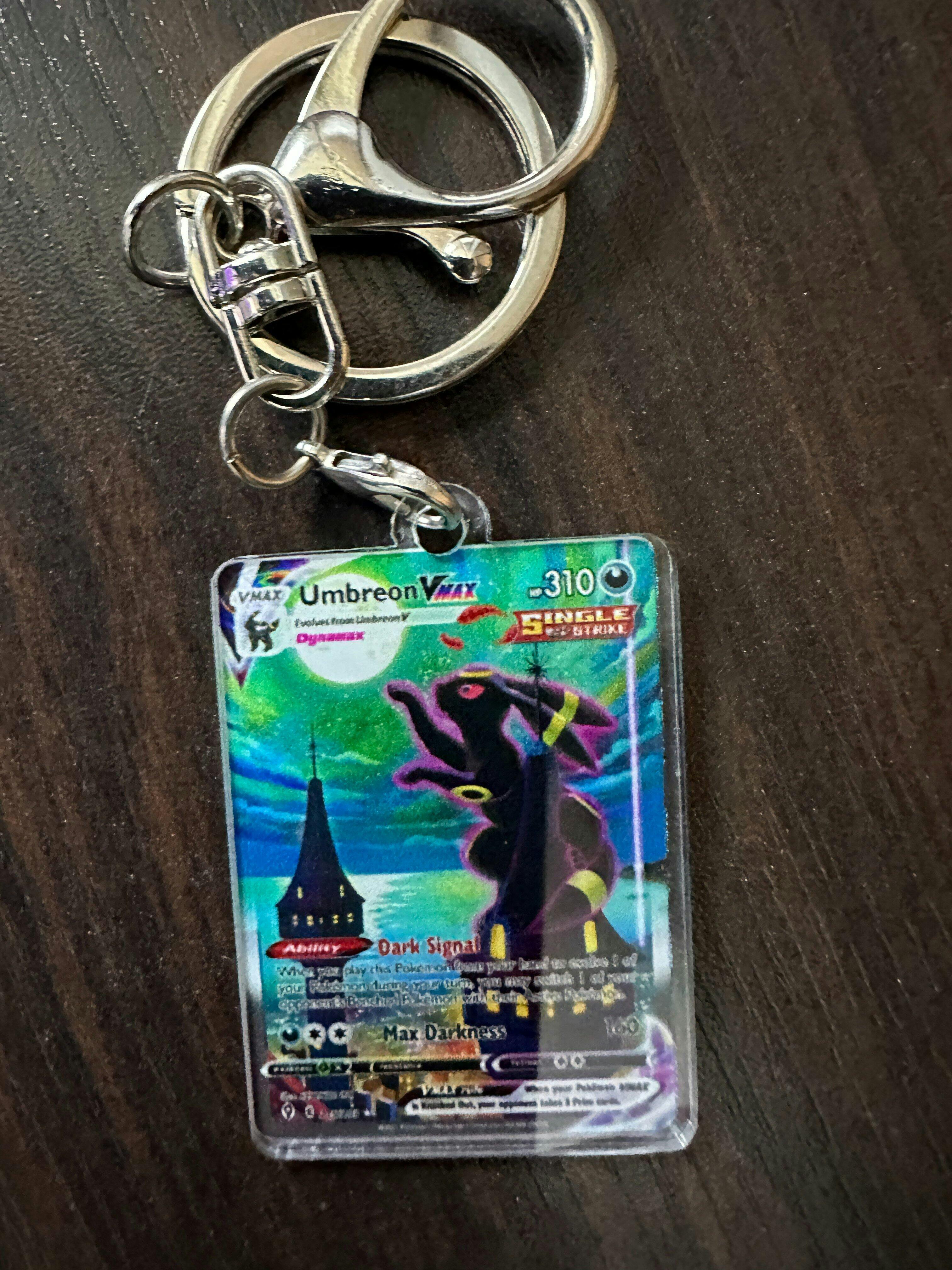 Keychain composed of a metal chain holding an acrylic piece with the adhesive of the corresponding card.